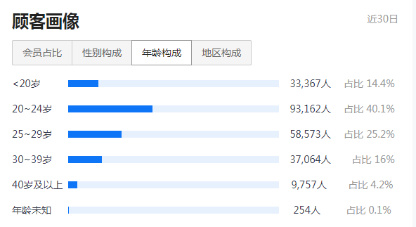 通過數(shù)據(jù)對韋小堡品牌受眾人群分析來看,韋小堡品牌男性消費者大于女性消費者,男性消費者人數(shù)超過三分之二。同時,該品牌消費者年齡分布最多的為 20~29歲這一群體,約占 65.3%,其次是 30~39 歲和<20 歲這兩個群體。另外,從地區(qū)分布來看,韋小堡消費人群大多是超一線或一線城市,尤其以廣深為主。